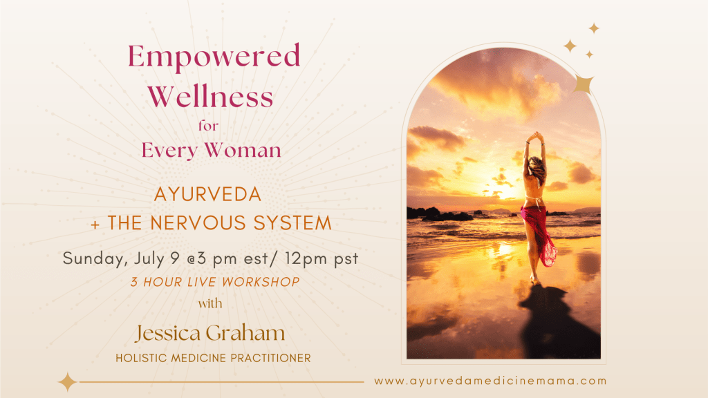 If you’d like to learn more about how to take control of your health (physical, mental, emotional, hormonal, sexual, etc), you won’t want to miss this upcoming workshop about AYURVEDA + The Nervous System!