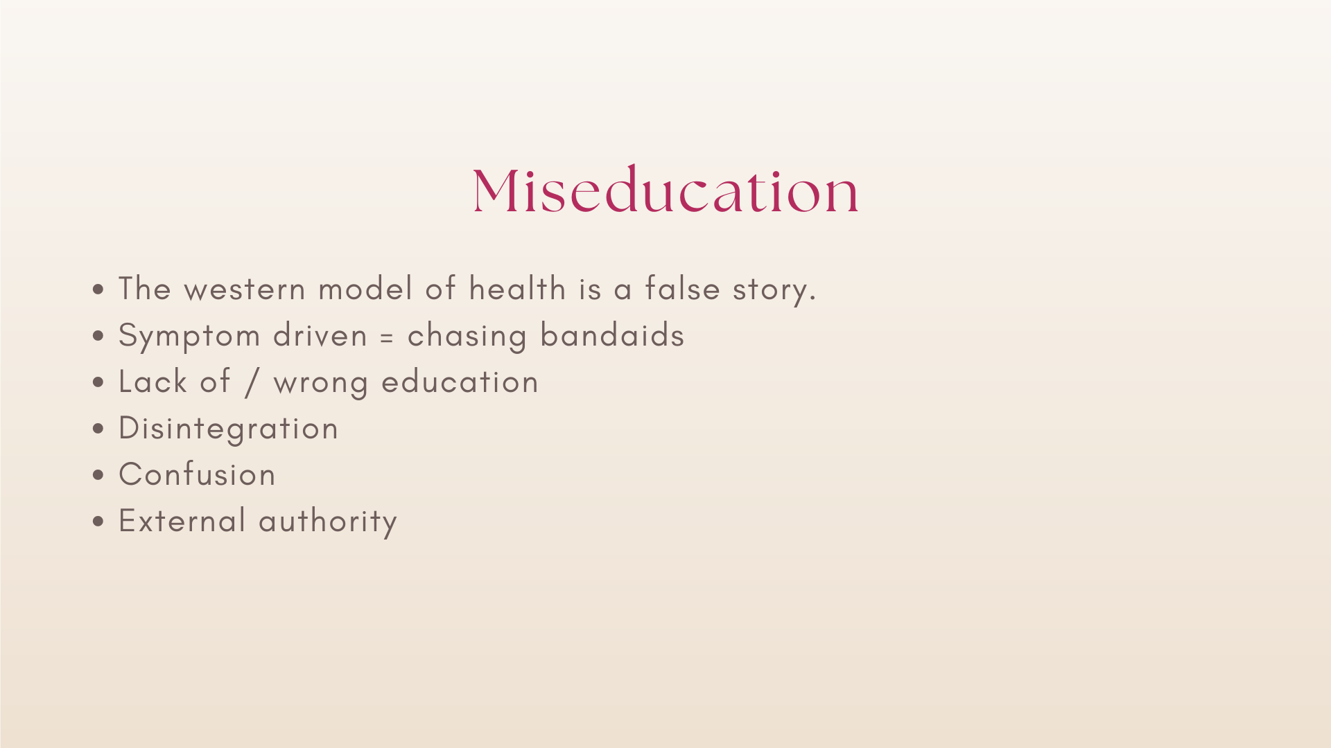 The fact is…your body is WISE and has an innate ability to HEAL, however, this is in direct opposition to the mainstream narrative around health and healing, which would have you believe that you know nothing in regard to your own body/mind and that it’s crucial to your survival to give your autonomy over to those that ‘know better’, a.k.a. the medical system.